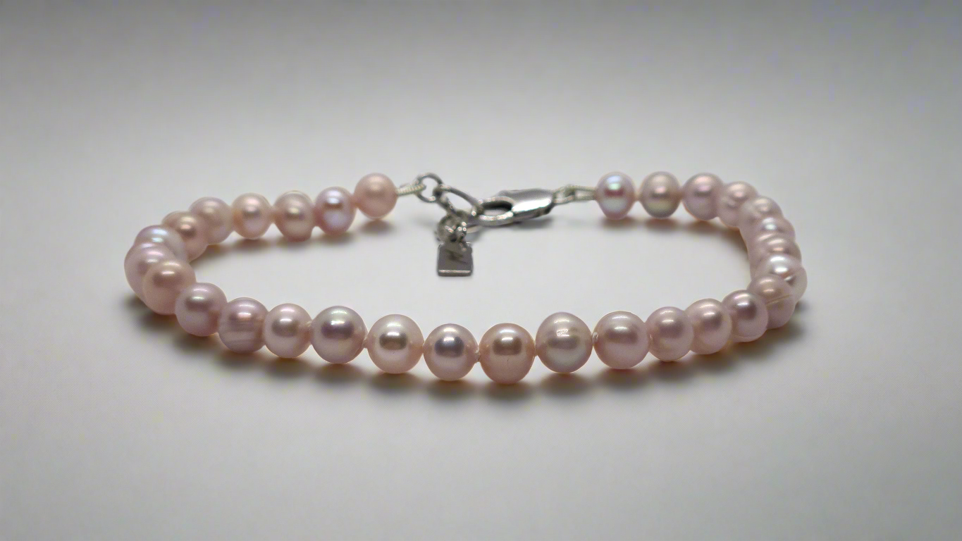 Lavender Pearl Bracelet - silver lobster clasp extended